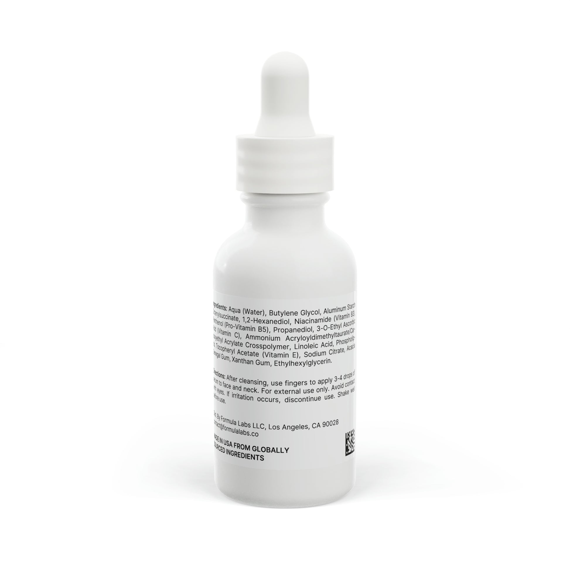 Ingredients: Aqua (Water), Butylene Glycol, Aluminum Starch Octenylsuccinate, 1,2-Hexanediol, Niacinamide (Vitamin B3), Panthenol (Pro-Vitamin B5), Propanediol, 3-O-Ethyl Ascorbic Acid (Vitamin C), Ammonium Acryloyldimethyltaurate/ Carboxyethyl Acrylate Crosspolymer, Linoleic Acid, Phospholipids, Tocopheryl Acetate (Vitamin E), Sodium Citrate, Acacia Senegal Gum, Xanthan Gum, Ethylhexylglycerin.