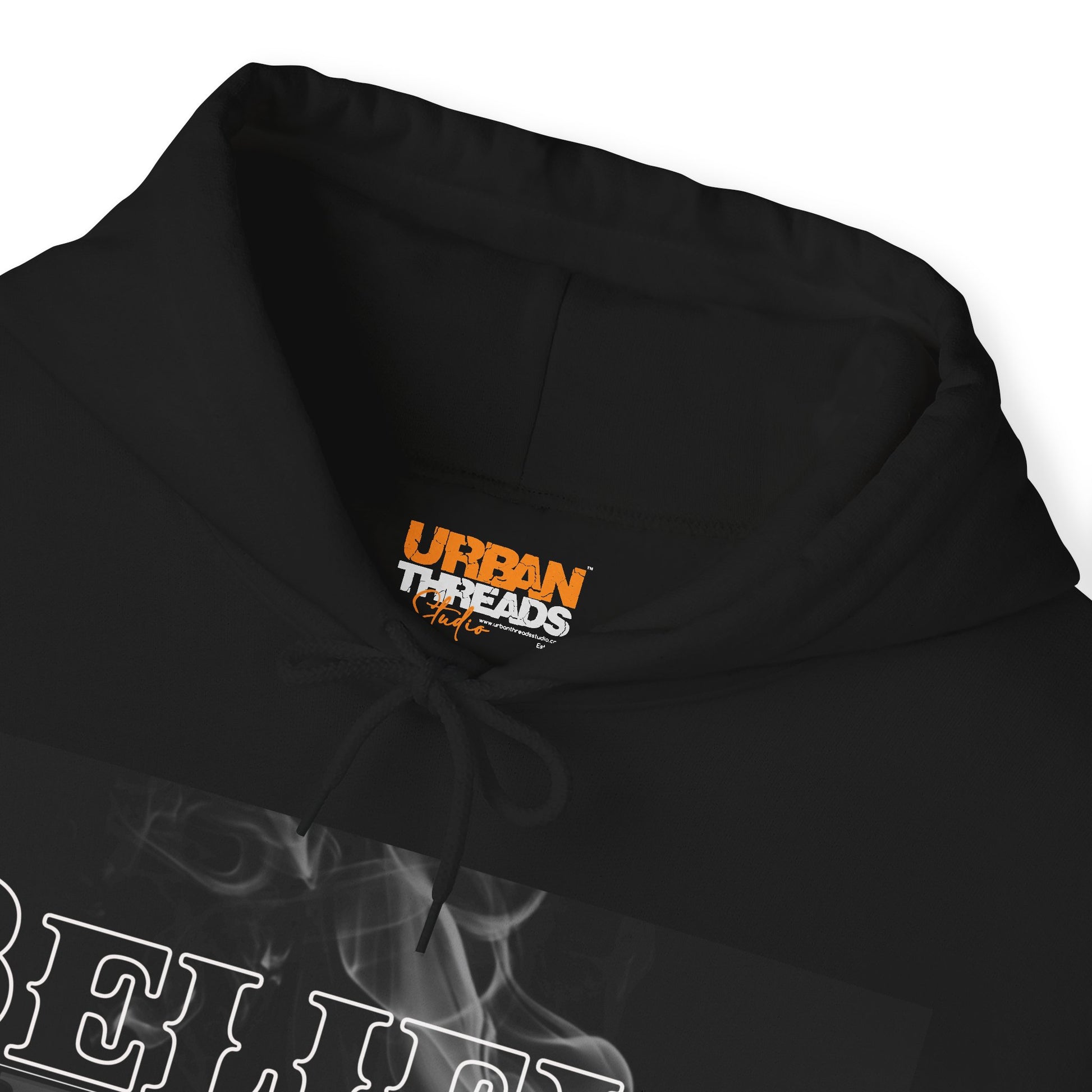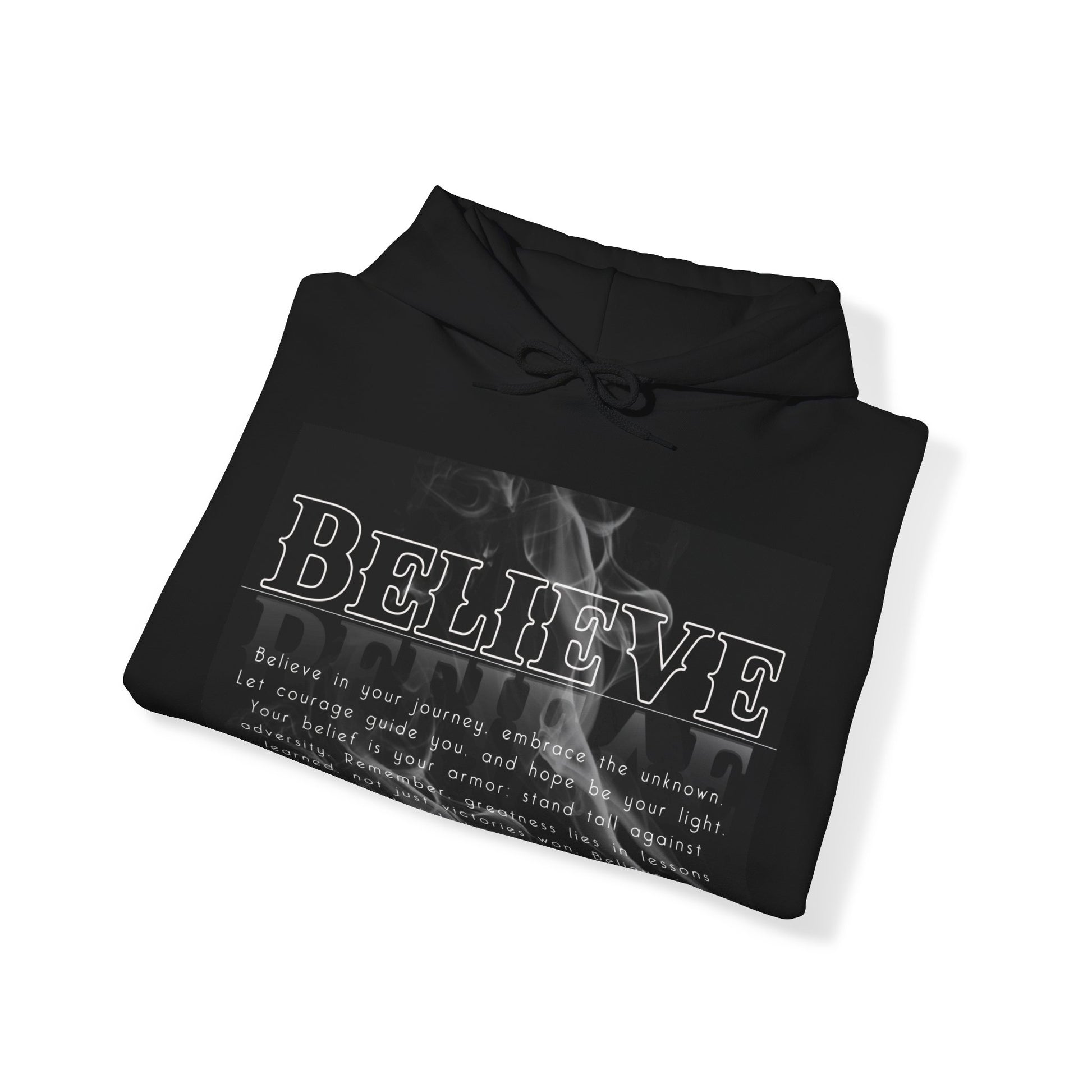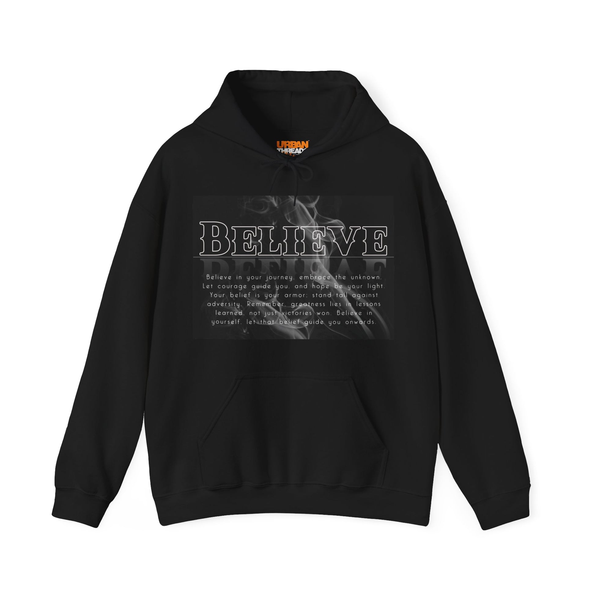 This Believe unisex heavy blend hooded sweatshirt is relaxation itself. Made with a thick blend of cotton and polyester, it feels plush, soft and warm, a perfect choice for any cold day. In the front, the spacious kangaroo pocket adds daily practicality while the hood's drawstring is the same color as the base sweater for extra style points.