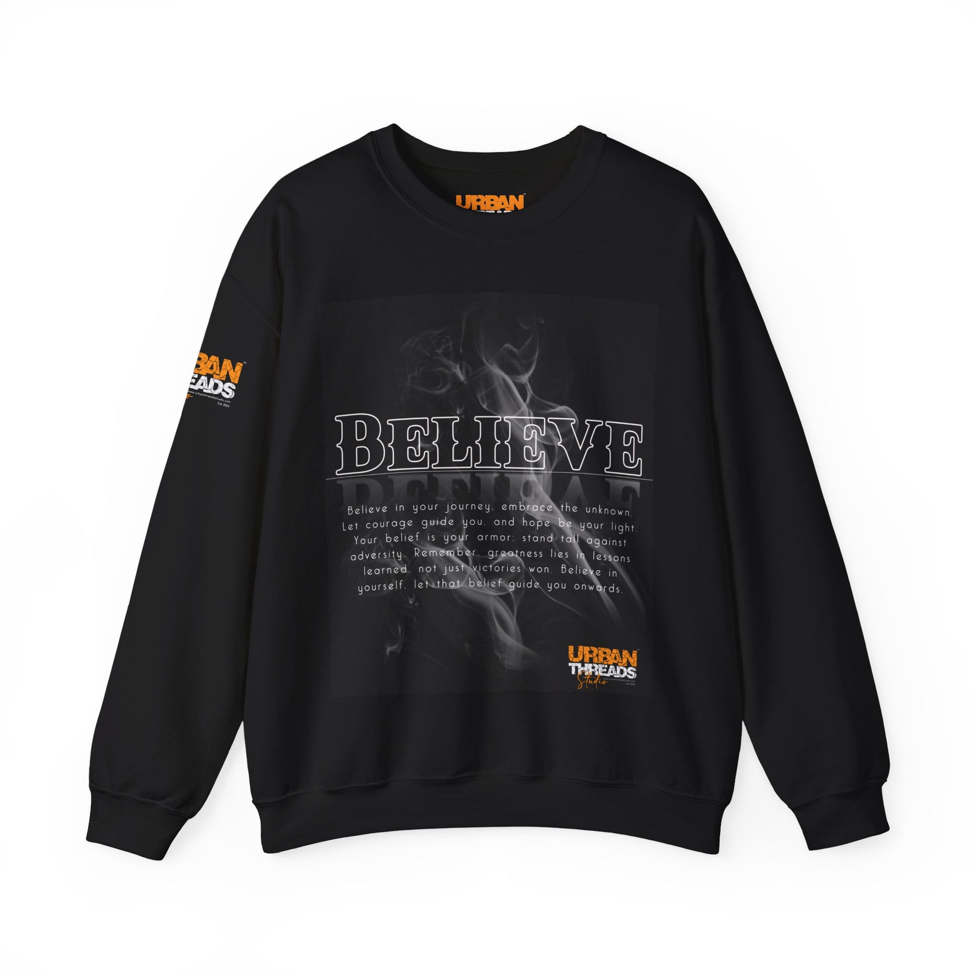 Ideal for any situation, a Believe unisex heavy blend crewneck Inspired By JH - sweatshirt is pure comfort. These garments are made from polyester and cotton. This combination helps designs come out looking fresh and beautiful. The collar is ribbed knit, so it retains its shape even after washing. There are no itchy side seams on these sweaters.