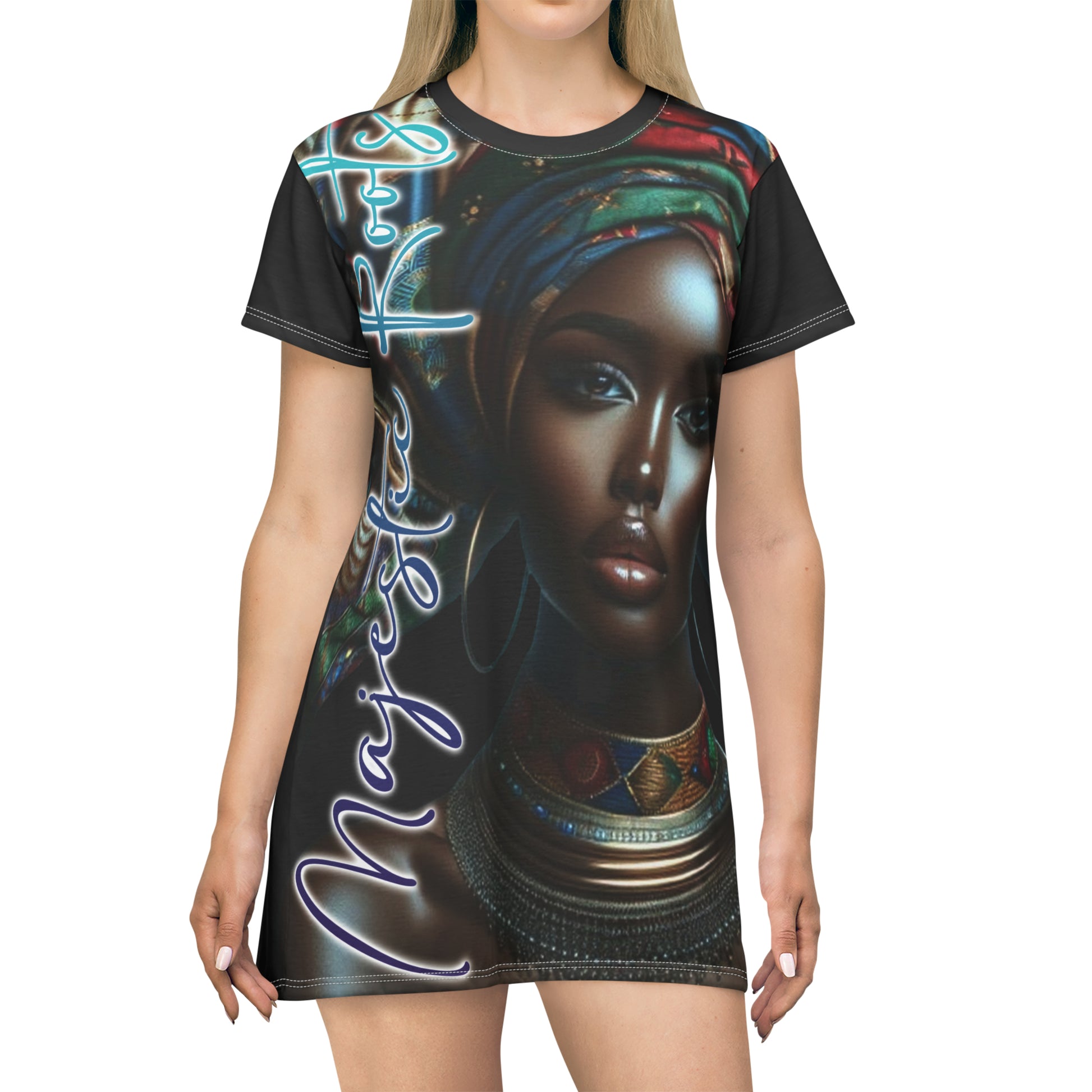 This Majestic Roots T-Shirt Dress is tagless, custom cut and sewn to match every style. The fun prints will make this t-shirt dress a great piece to sell online.